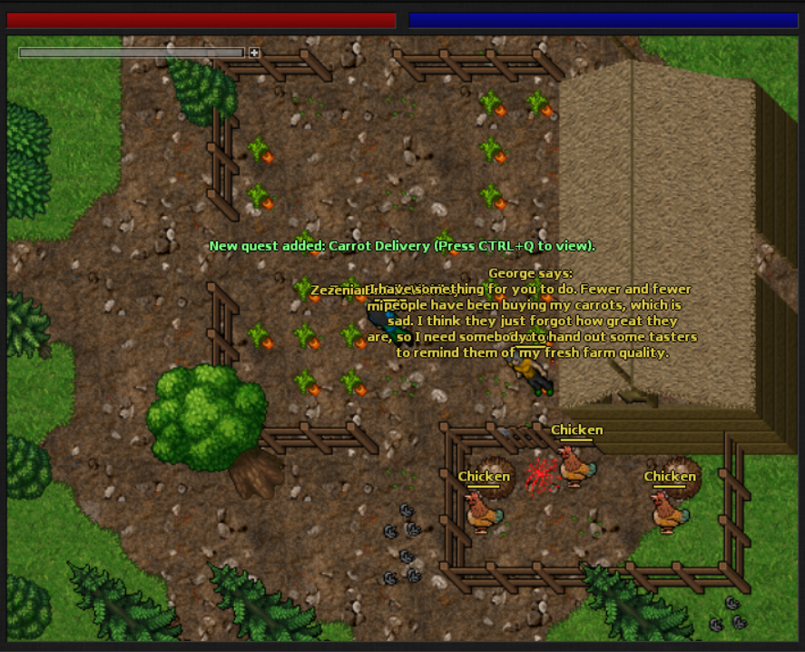 Após terminar todas as entregas, volte até o npc George e fale"hi" > "Reward". Você completará a missão e ganhará xp, 300 de gold e um wooden buckler.