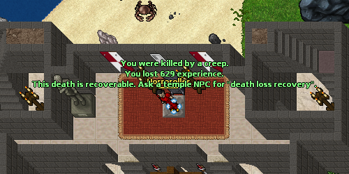Além disso, ao morrer, você perde 2% de sua experiência total, nível de mágica e habilidades. Se sua conta tiver um tempo premium ativo, essas perdas de morte serão reduzidas para 1,5%.