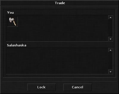 Ao pressionar Aceitar, a troca é concluída, removendo os itens do seu inventário e adicionando os itens do outro ao seu inventário. Antes da negociação, é inteligente garantir que você tenha espaço suficiente em seu inventário - caso contrário, os itens que você receber serão jogados no chão abaixo do seu personagem e alguém poderá roubá-los!