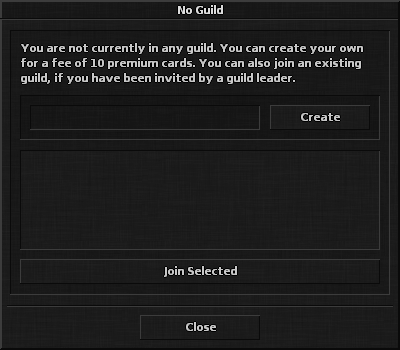 - Criar Guild - Crie o seu próprio clã para uma taxa única de 10 Cartões.